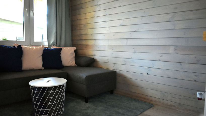 Domek przeznaczony jest dla 4-osób (możliwa jest dostawka w postaci łóżeczka turystycznego dla dziecka) i składa się z salonu z aneksem kuchennym, sypialni, łazienki oraz zadaszonego tarasu o powierzchni 12m2.